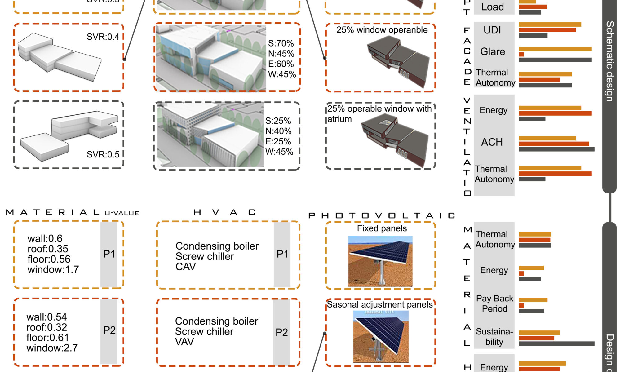 What is the impact of schematic and developed design variables on energy consumption, visual and thermal comfort?