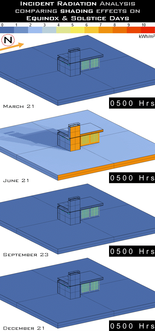 What is the impact of shading devices/ shade on solar incident radiation?