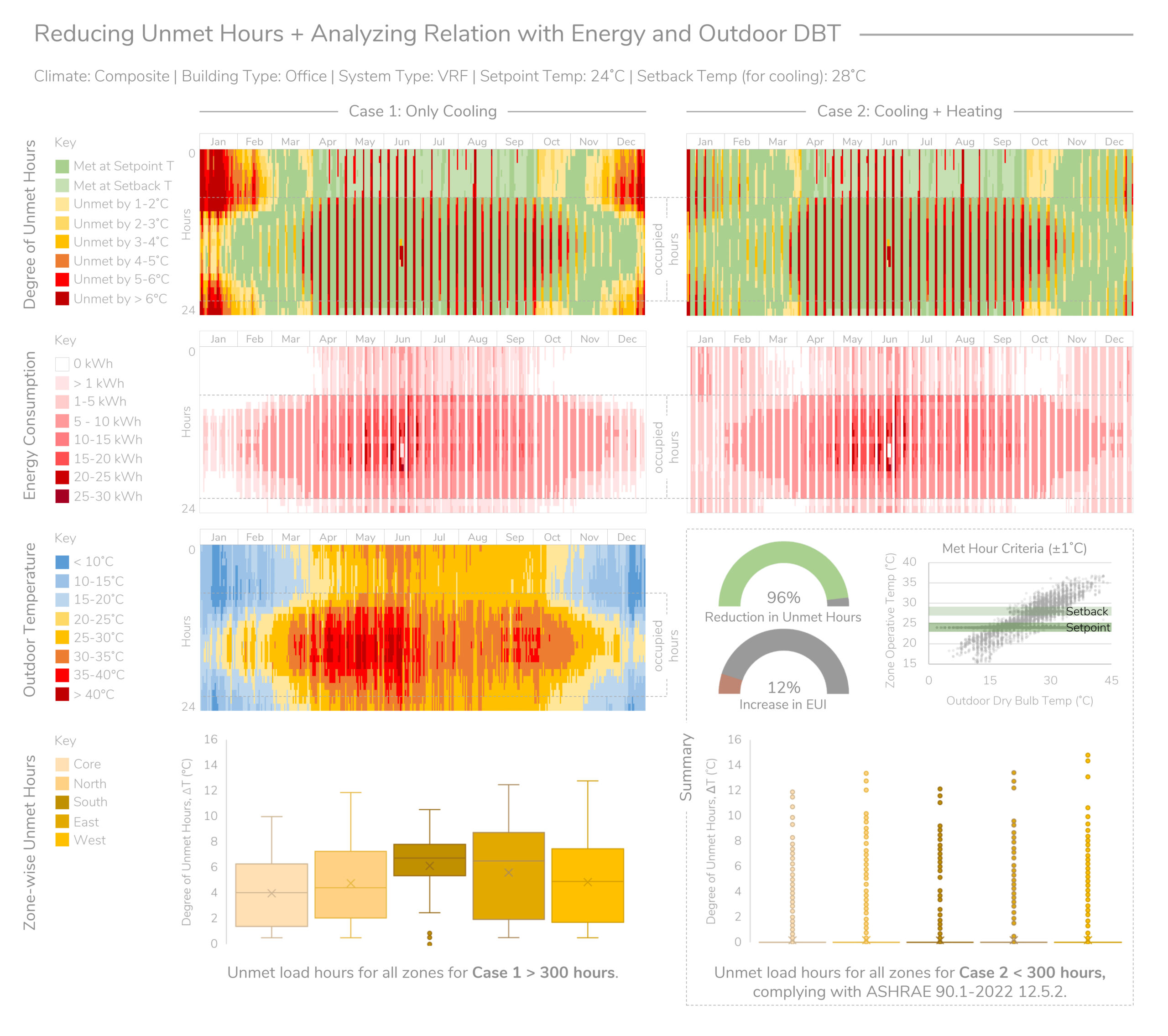 What is the impact of schematic and developed design variables on energy consumption, visual and thermal comfort?
