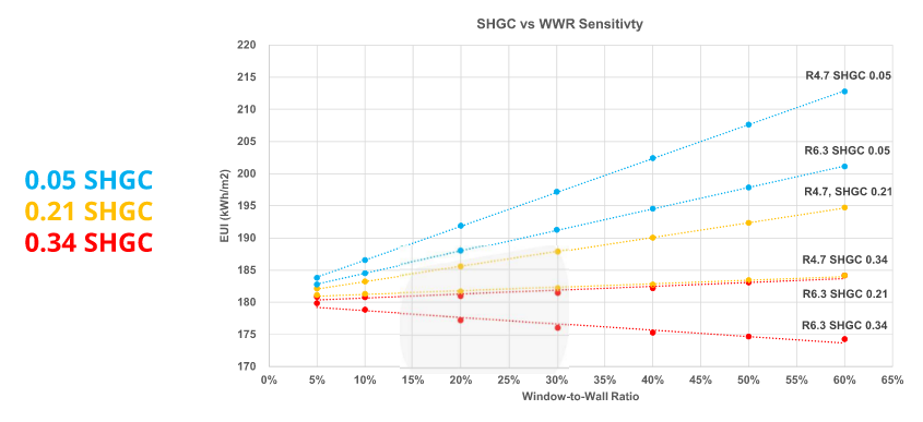 What is the impact of Solar Gain on Net Heating or Cooling Required?