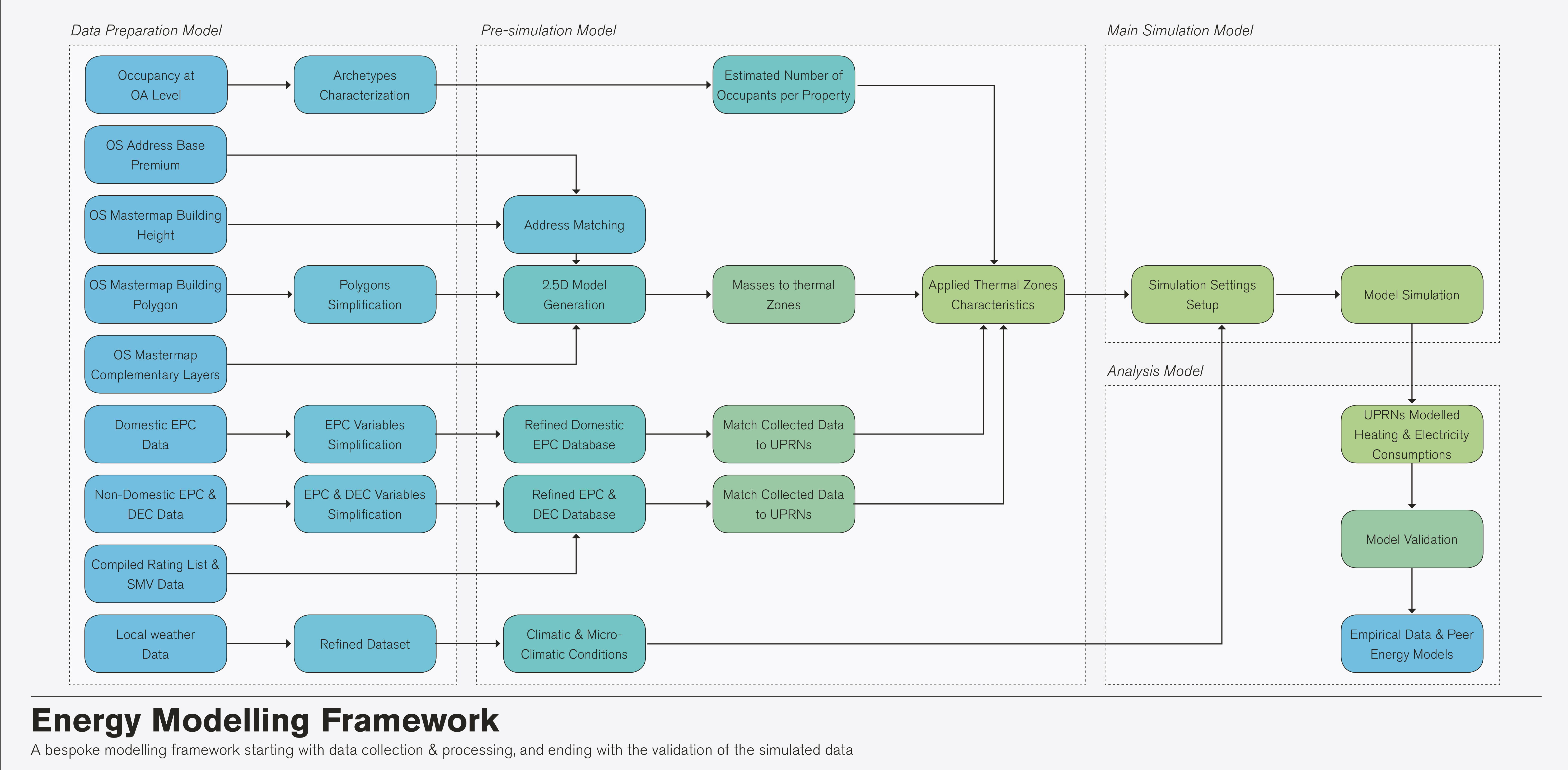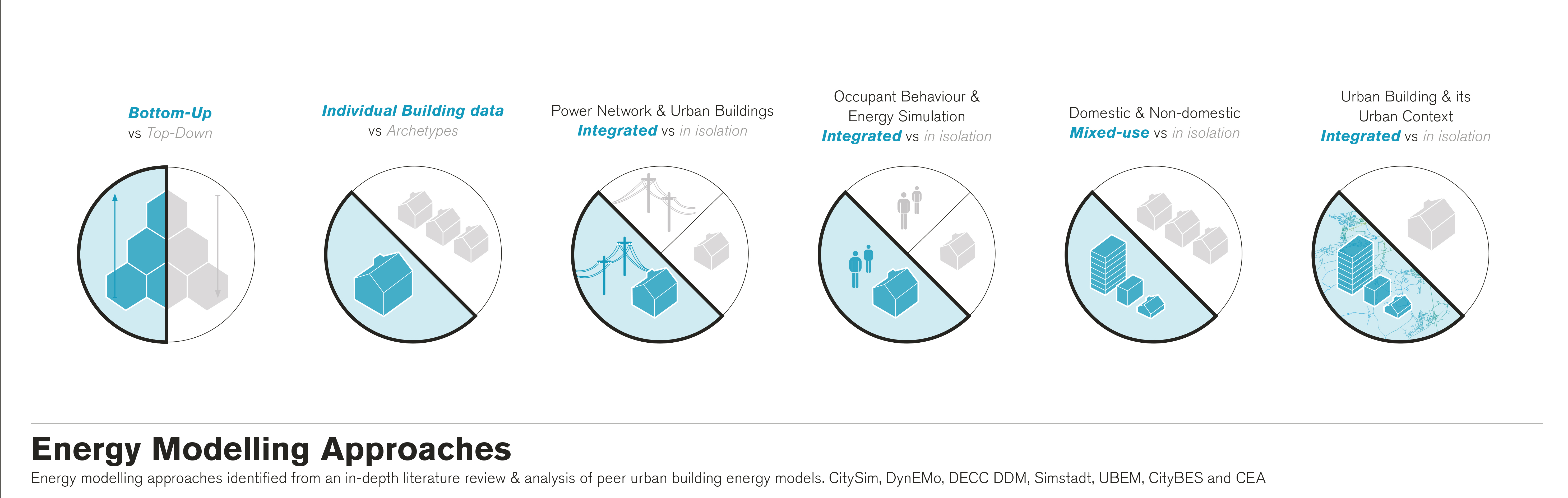 How to integrate accessible urban building data in a comprehensive energy modelling framework? How to simulate energy consumption of current building stock at a reasonable level of detail and accuracy to investigate the feasibility of potential urban energy scenarios to build the city of tomorrow? What defines the existing energy modelling approaches and how to combine them in a comprehensive modelling framework?
