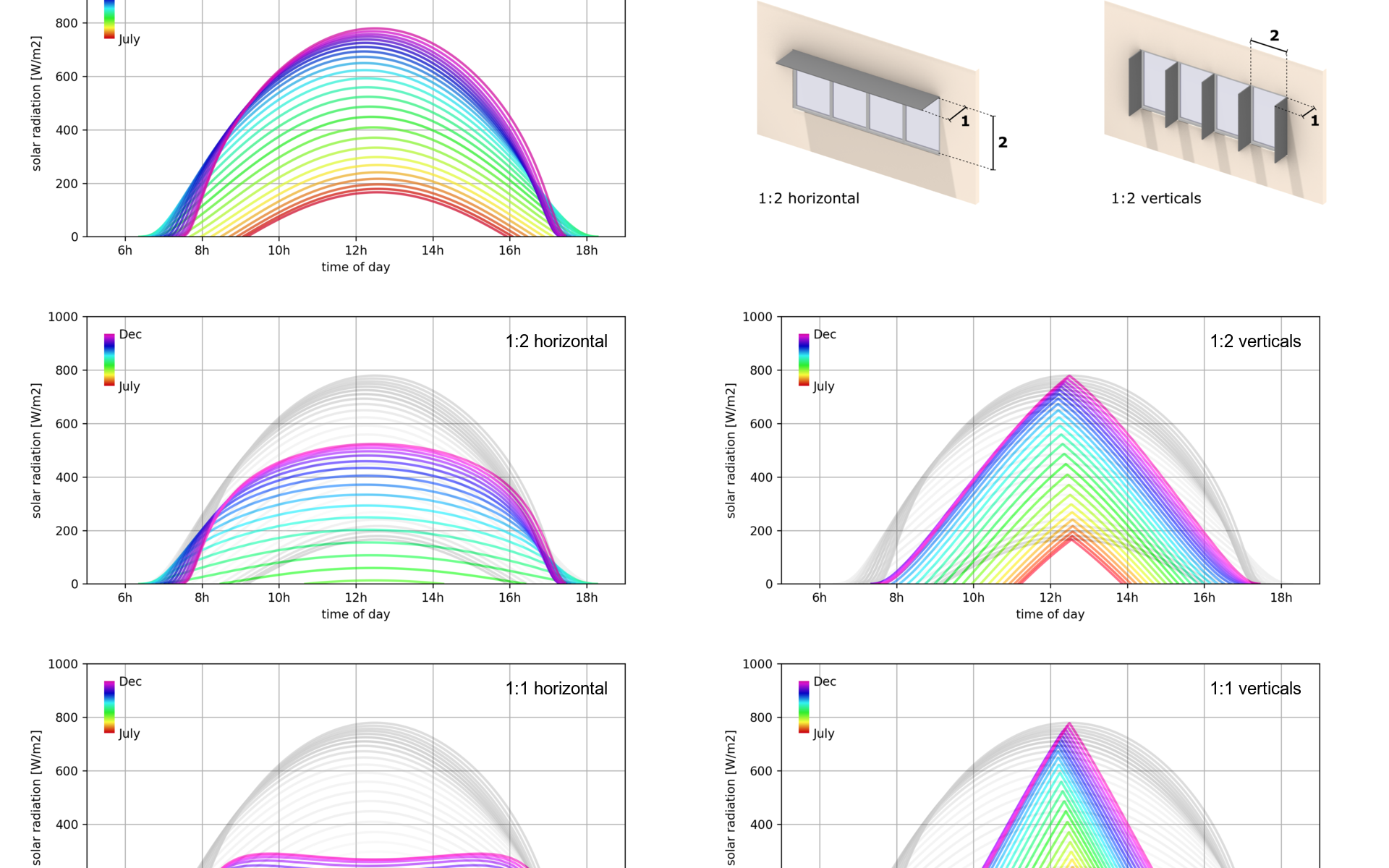 What is the impact of sunshade sizing on facade solar loads?