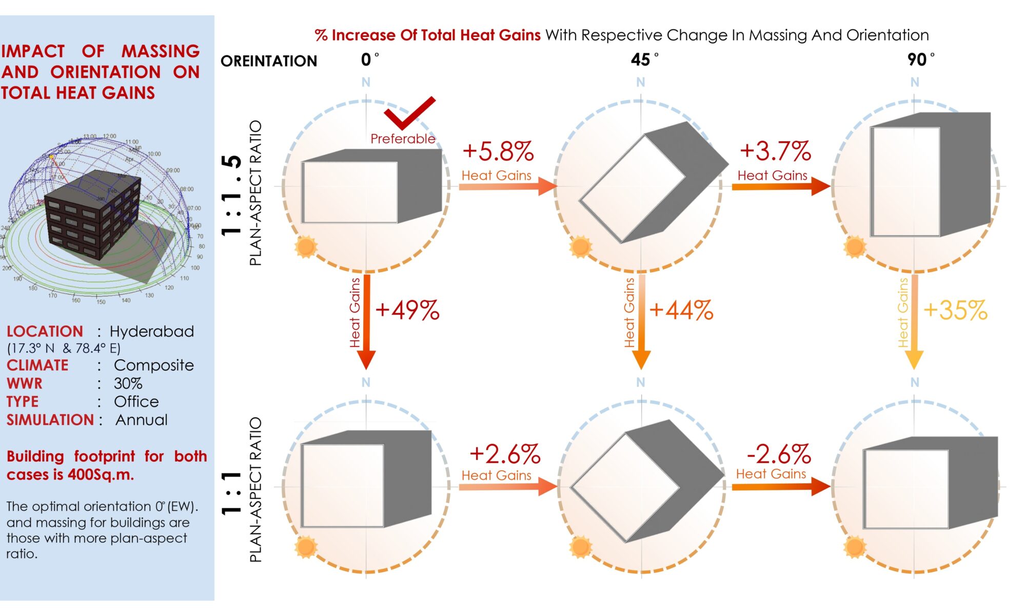 What is the impact of building type and form on heat gains and losses for an extreme summer week?