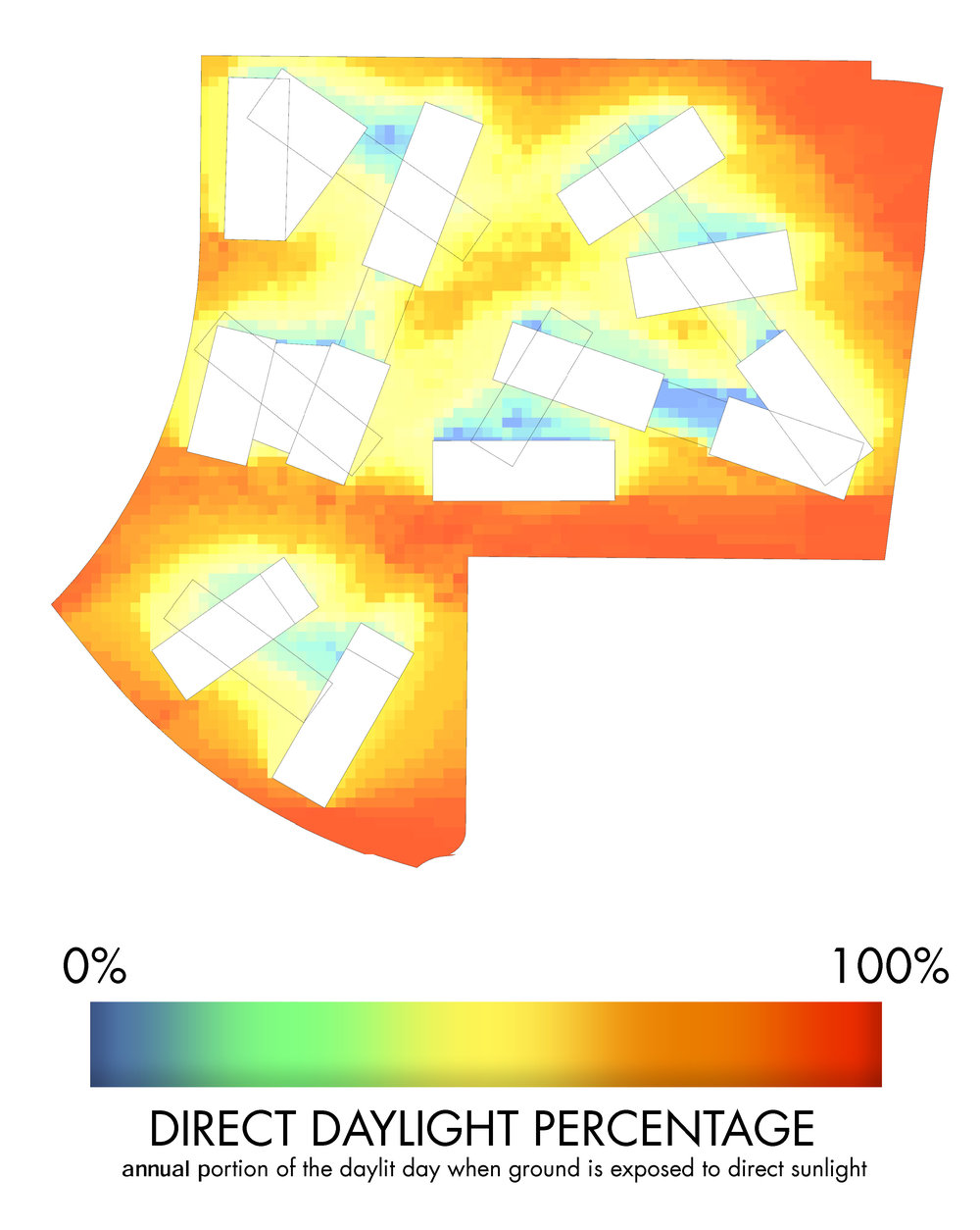 What percent of the day does the public space get exposed to direct sunlight?
