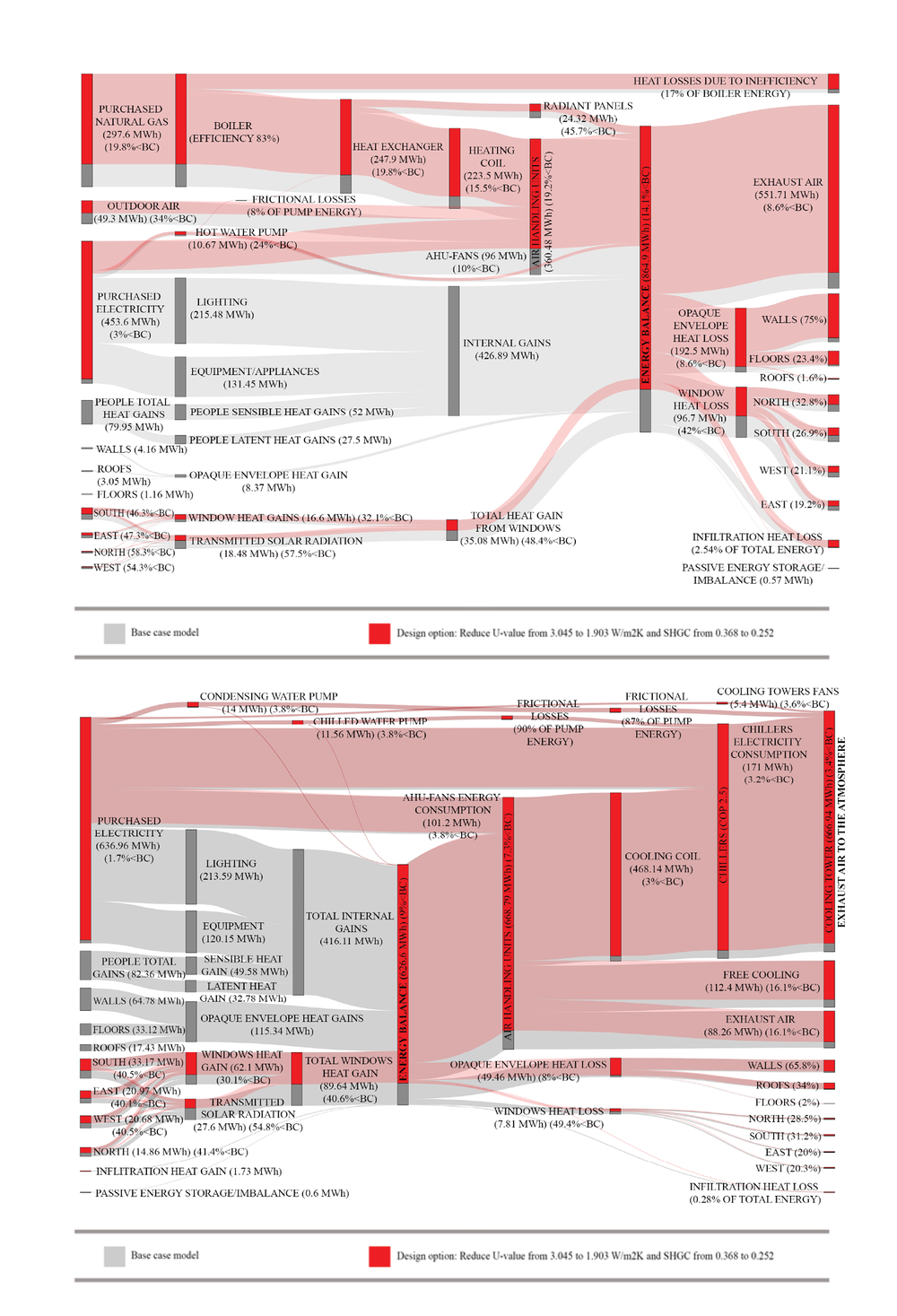 What is the impact of window-to-wall ratio on Energy Use Intensity (kBTU/ft2/yr)?